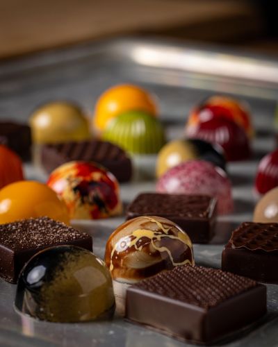 handgjorda praliner, chokladkakor och exklusiva presentaskar.